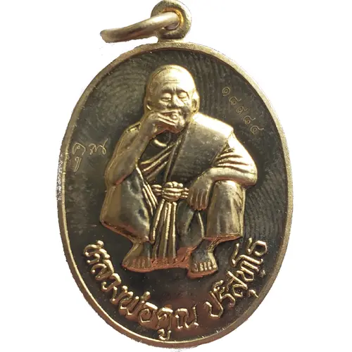 Beschrijving voorzijde Luang Phor Khun, squatting, Thai text below