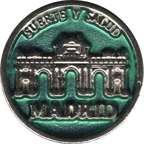| Obverse description | Token representing the door of Alcalá de Madrid on green background. |