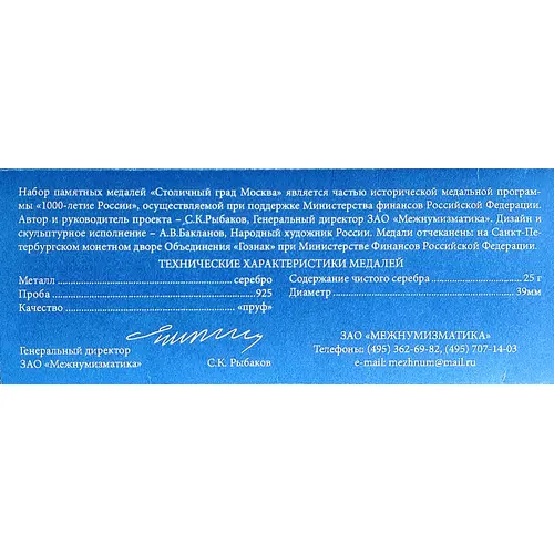 | Leyenda del reverso | 1000 – ЛЕТИЕ РОССИИ РОССИЙСКОЙ ФЕДЕРАЦИИ |