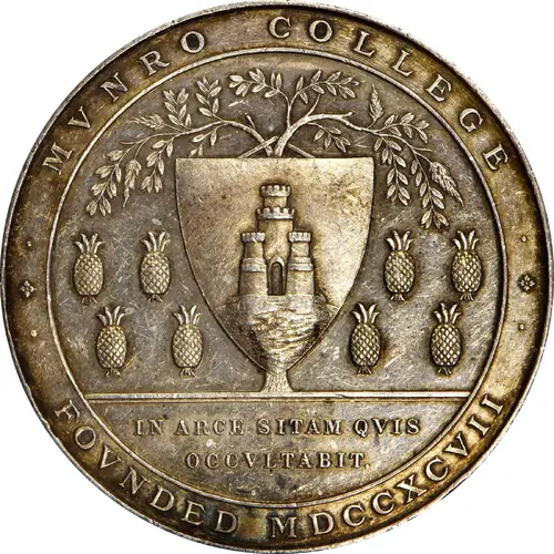 | Надписи аверса | MVNRO COLLEGE IN ARCE SITAM QVIS OCCVLTABIT. FOVNDED MDCCXCVII |