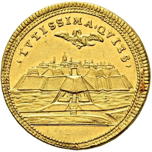 Opis rewersu Inscription in ten lines. The seven castles of Siebenburgen on seven hills below.