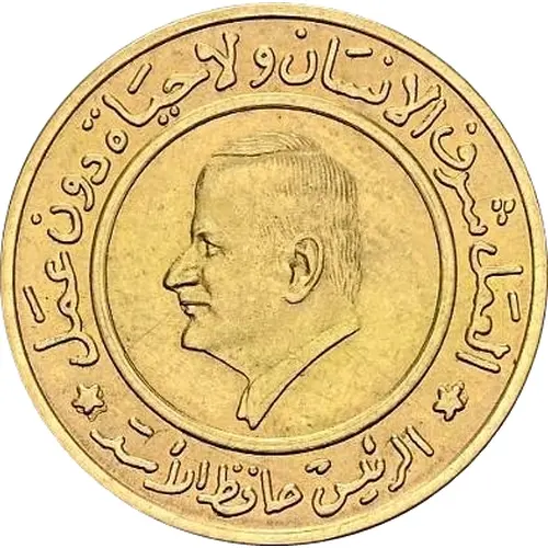 | Opschrift voorzijde | العمل شرف الانسان ولا حياة دون عمل الرئيس حافظ الأسد (Translation: Work is the human's honor, and there is no life without work President Hafez Al-Assad) |