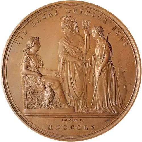 | Legenda awersu | HIC LAURI DULCIOR USUS MDCCCLV |