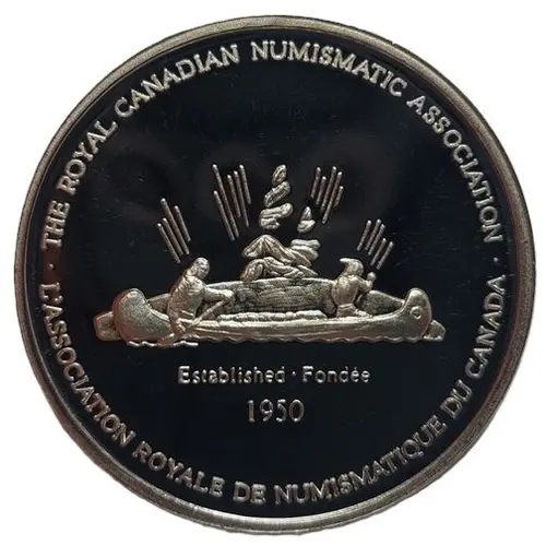Obverse lettering THE ROYAL CANADIAN NUMISMATIC ASSOCIATION Established Fondée 1950 L`ASSOCIATION ROYALE DE NUMISMATIQUE DU CANADA