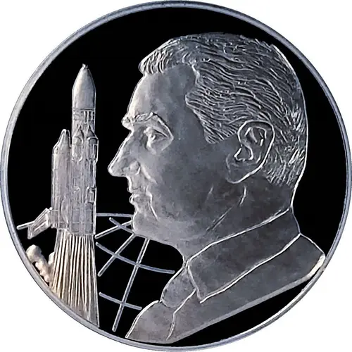 | Descripción del anverso | Image of Valentin Petrovich Glushko, a Soviet engineer and scientist in the field of rocket and space technology. One of the pioneers of rocket and space technology, the founder of the Soviet liquid rocket engine building and the Energia-Buran transport system. In 1974-1989, he headed NPO Energia as a General Designer. |