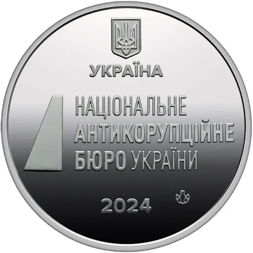 Logotype of the National Anti-Corruption Bureau of Ukraine, above which Ukraine’s small coat of arms; beneath are the medal’s issue year – 2024 and the mint mark of the National Bank of Ukraine Banknote Printing and Minting Works. |