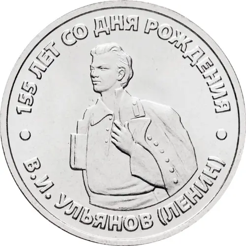 | Chữ khắc mặt trước | 155 ЛЕТ СО ДНЯ РОЖДЕНИЯ В.И. УЛЬЯНОВ (ЛЕНИН) (Translation: 155 YEARS SINCE THE BIRTH V.I. ULYANOV (LENIN) ) |