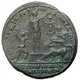 Popis rubu Emperor Commodus, standing on base, wearing military attire, looking right, holding spear in right hand and erecting trophy in left hand. Bounded captive seated below, to the right. Gladiator facing right, wielding double-axe below, to the left, about to sacrifice hump-backed bull facing left, standing below the captive.