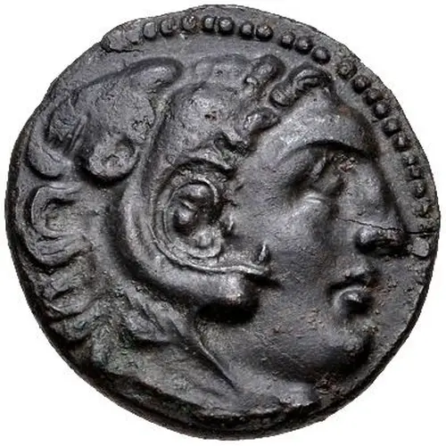 | Beschrijving voorzijde | Head of Herakles right, wearing lion skin. |