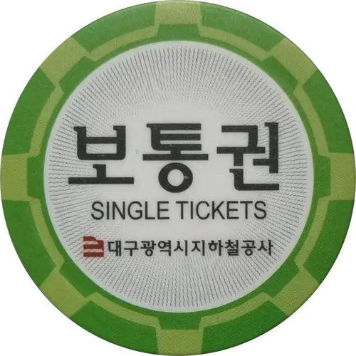 | Obverse lettering | 보통 권 SINGLE TICKETS 대구 광역시 지하철 공사 (Translation: Single Ticket Daegu Metropolitan City Subway Construction) |