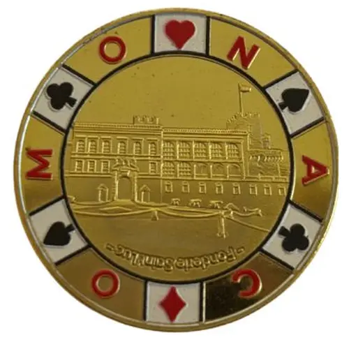 | Obverse description | Text in red, spaced by the four symbols in the card game. In the center, Place du Palais Princier. |