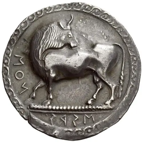| توضیحات روی سکه | Bull standing left, head reverted and in exergue, MIPI retrograde |