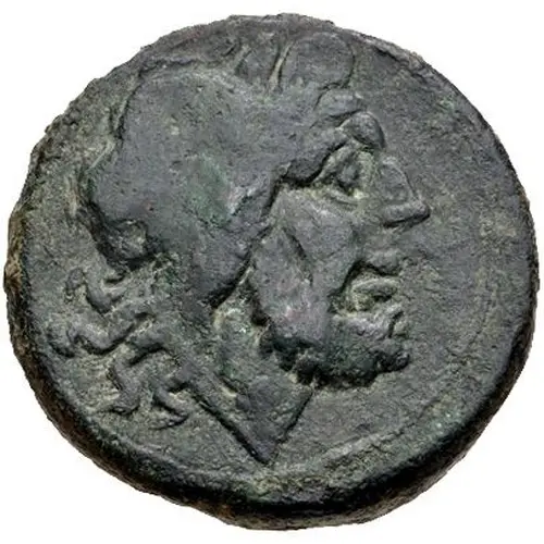 Obverse description Head of Zeus Dodona right, wearing wreath of oak-leaves.