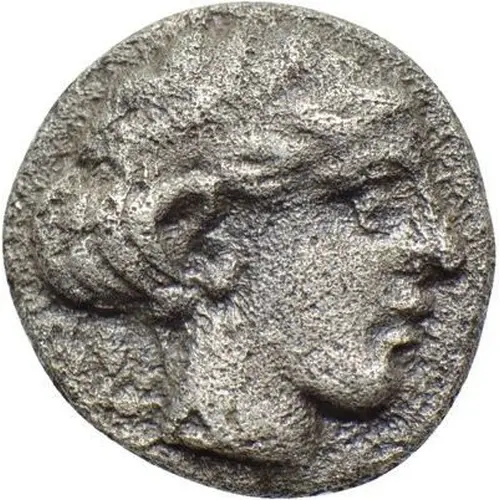 | Reversbeschreibung | Head of ram right within incuse square. |