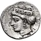 | Reverse description | Female head (Hera? Tyche?) to left, wearing a turreted crown ornamented with two discs and and an acanthus leaf, an earring with three pendants, and a pearl necklace. |