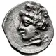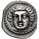 背面描述 Head of Aphrodite left, wearing ornate stephanos, single-pendant earring, and necklace.