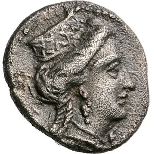 | توضیحات روی سکه | Head of Hera to right, with her hair rolled with a high, ornamented stephane, and wearing a pemdant earring, and a necklace |