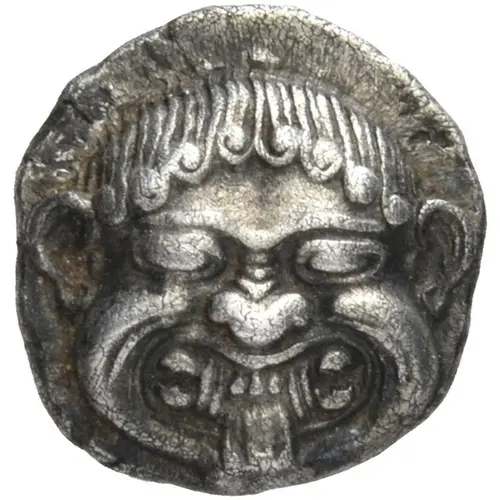 | توضیحات روی سکه | Facing gorgoneion with protruding tongue |