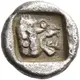 Arka yüz açıklaması Lion`s head to right, with open jaws; all within an incuse square.