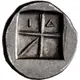 | توضیحات پشت سکه | Large square incuse with thin skew pattern; I-Δ across two compartments. |