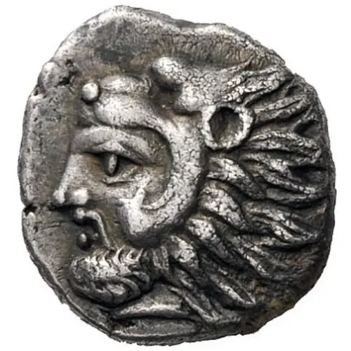 توضیحات روی سکه Head of bearded Herakles in lionskin headdress to left