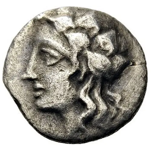 | Obverse description | Head of young Dionysos to left, wearing ivy wreath |