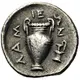 | Reverse description | Amphora with tall handles, above, ivy leaf and to right, prochous with handle to right |