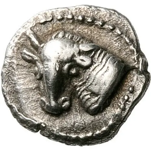 | Popis rubu | Head of bridled horse to right; all within incuse square |