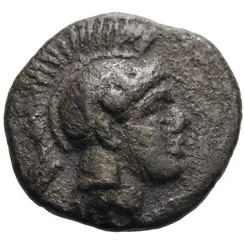 | 正面描述 | Head of Athena wearing crested Attic helmet to right |