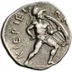 | توضیحات پشت سکه | Warrior (Ajax?), nude but for helmet, striding right, holding shield with his left hand and short sword with his right |