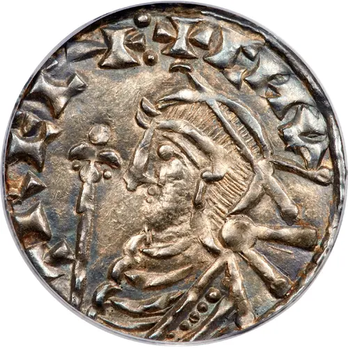 | 裏面の説明 | Voided short cross with central pellet in circle, moneyer and mint around. |