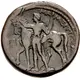 | توضیحات پشت سکه | Nude horseman, spear in his left hand, leading his horse left; Π in left field. |