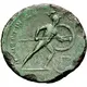 | Descrição do reverso | Warrior, holding spear and shield, advancing right; Π (mark of value) to right. |