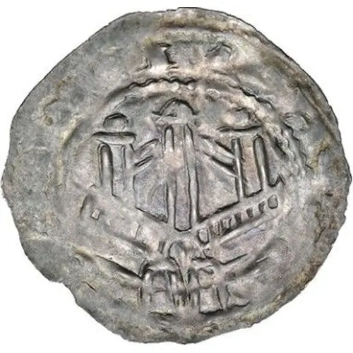 | Obverse description | Three-towered architecture (cityscape?). A ring in the archway. Outside, a false inscription between two pearl circles. |