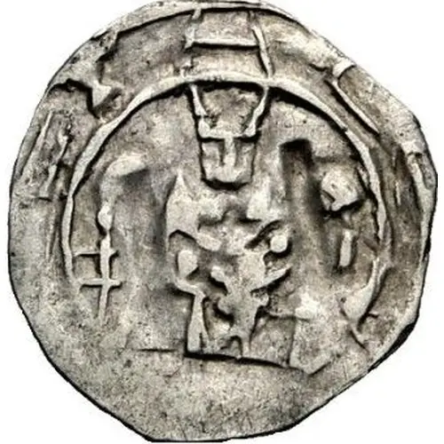 | Reverse description | Church facade, the cornice panels bearing the ringlets are higher, the rim ends in knobs. |