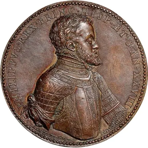 | Legenda do anverso | PHILIPPVS. REX. PRINC. HISP. AET. S. AN. XXVIII. IAC. TREZZO F. - 1555 |