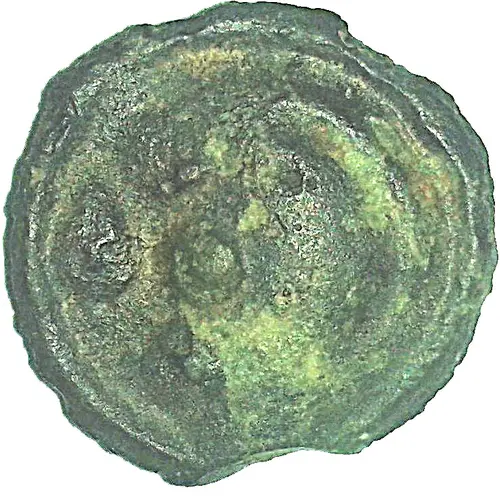| Obverse description | Stylized head left, eye, nose and mouth indicated by globules. |