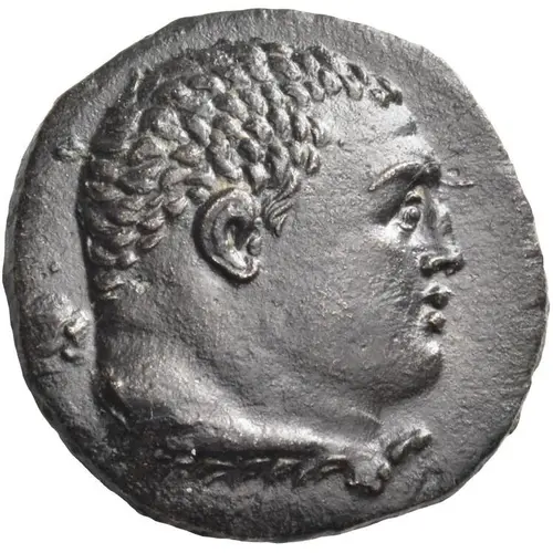 | 正面描述 | Bust of Pylaemenes (as Herakles) to right, with club over his shoulder and lion`s skin tied around his neck. |