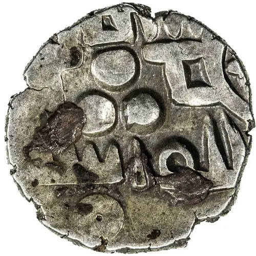 | Descrição do anverso | Traces of Arabic legend Lillah Asad at bottom, with three-dot motif above |