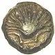 | Reverse description | Dolphin facing right. Three pellets above. |