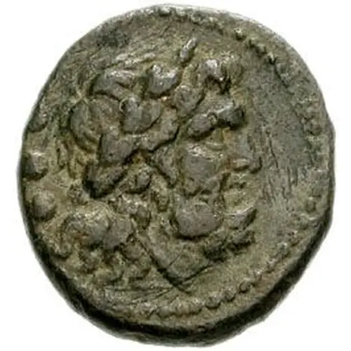 | Obverse description | Laureate head of Zeus right; three pellets (mark of value) behind. |