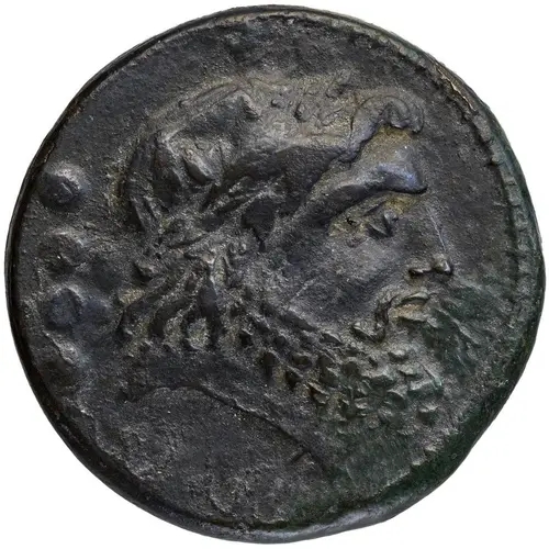 | Descrizione del dritto | Laureate head of Jupiter right; four pellets (mark of value) to left. |