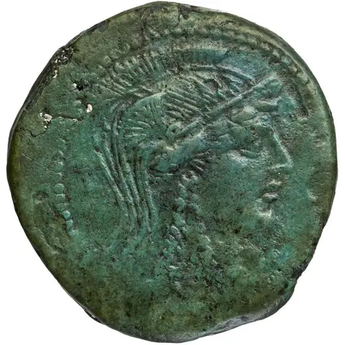 | توضیحات روی سکه | Head of Minerva right, wearing triple crested Attic helmet. |
