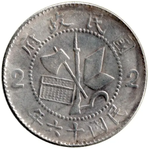 | Reverslegende | 革命軍北伐勝利紀念 貳毫銀幣 (Translation: Commemorative of the Huaming Army Victory in the Northern Expedition 2 Jiao / Silver coin) |