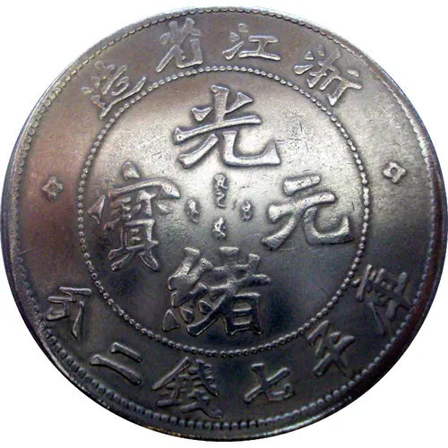 | Averslegende | 浙江省造 光緒元寶 庫平七錢二分 (Translation: Made in Chekiang Province Guangxu Yuanbao Kuping 7 Mace and 2 Candareens) |