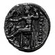 背面描述 Zeus seated with a staff, facing left and holding a bird