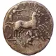 | Mô tả mặt sau | Charioteer, holding reins in his left hand and goad in his right, driving biga galloping to right, below, triskeles running to left. |