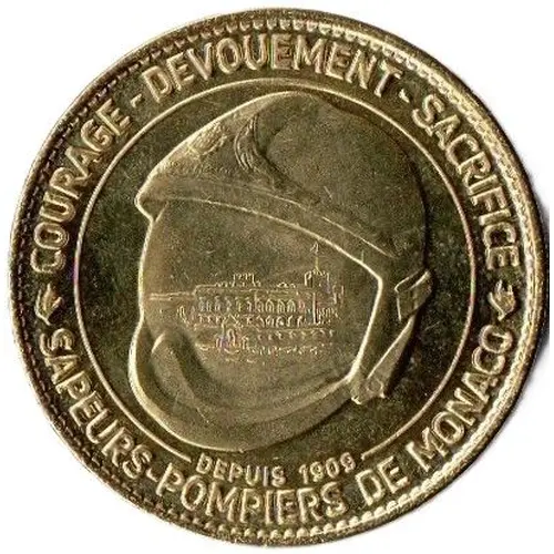 | Descrizione del dritto | Circular legend, Monaco firefighter`s helmet, visor closed with reflection of the Prince`s Palace. |