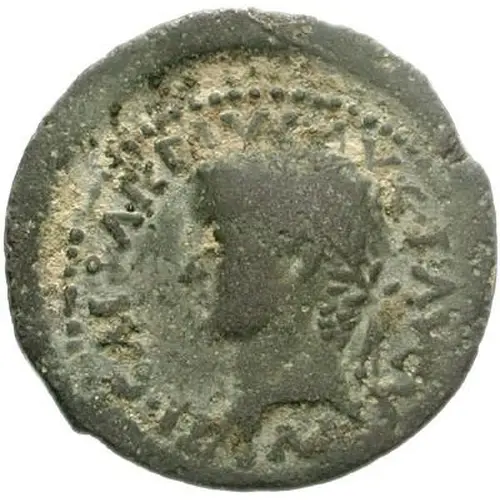 توضیحات روی سکه Laureate head of Tiberius, left