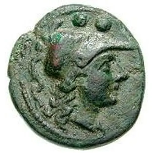 | توضیحات روی سکه | Head of Athena to right, wearing crested Corinthian helmet; two pellets (mark of value) above. |